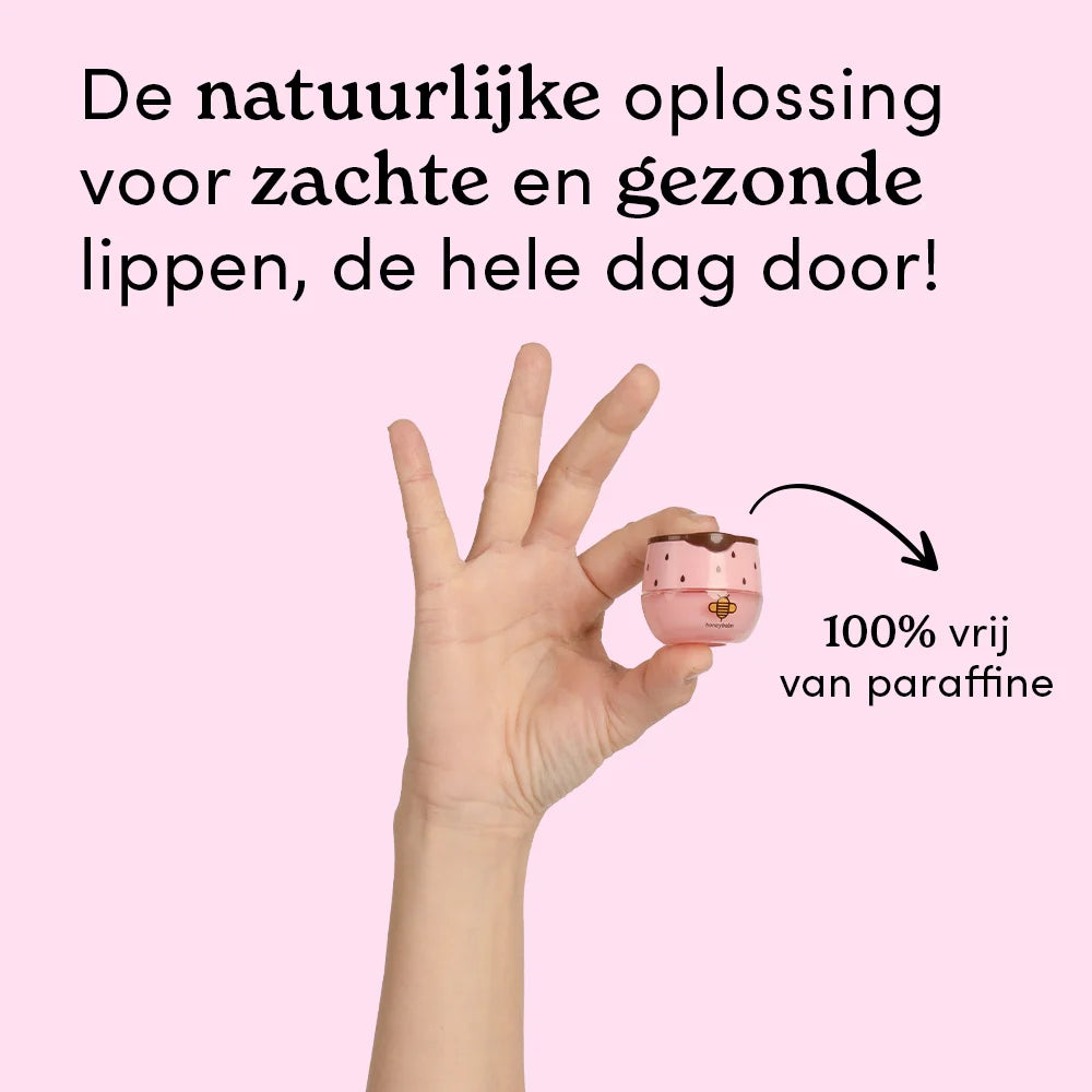 Een hydraterende lippenbalsem en lipverzorging met bijenwas, vitamine E en propolis om de lippen zacht en gehydrateerd te houden. De sappige aardbeiensmaak maakt het leuk, fruitig en een beetje nostalgisch. De balsem heeft een zachte roze tint die de lippen een glanzende afwerking geeft met een frisse, speelse kleur.